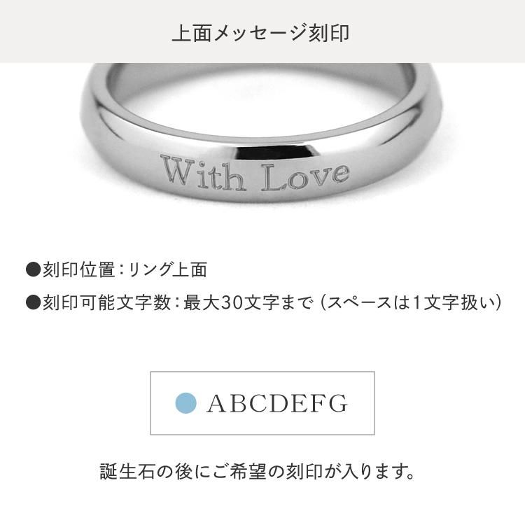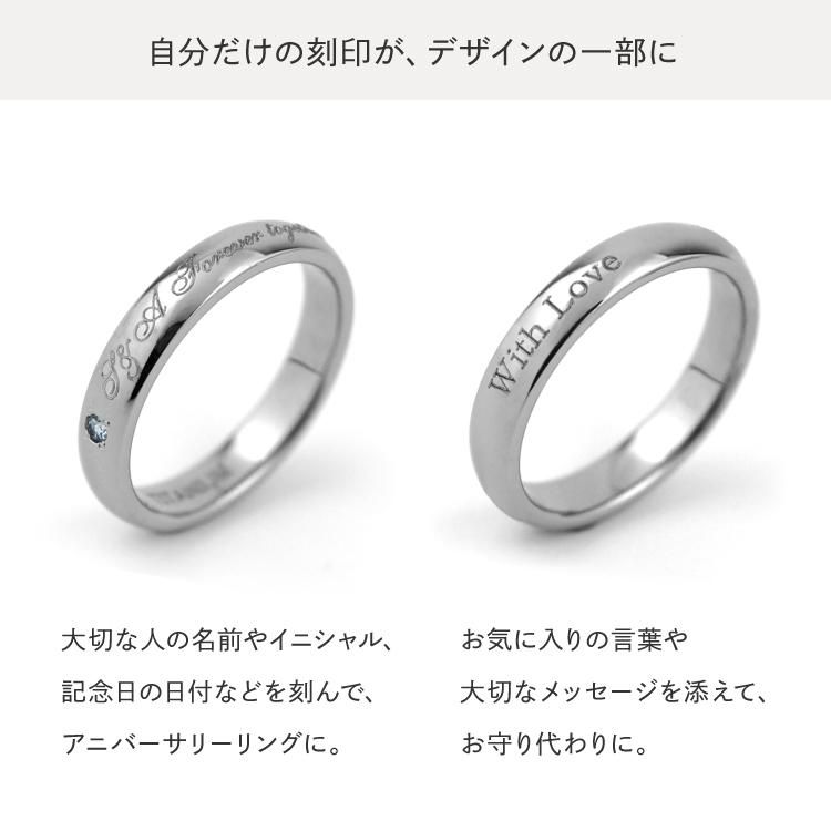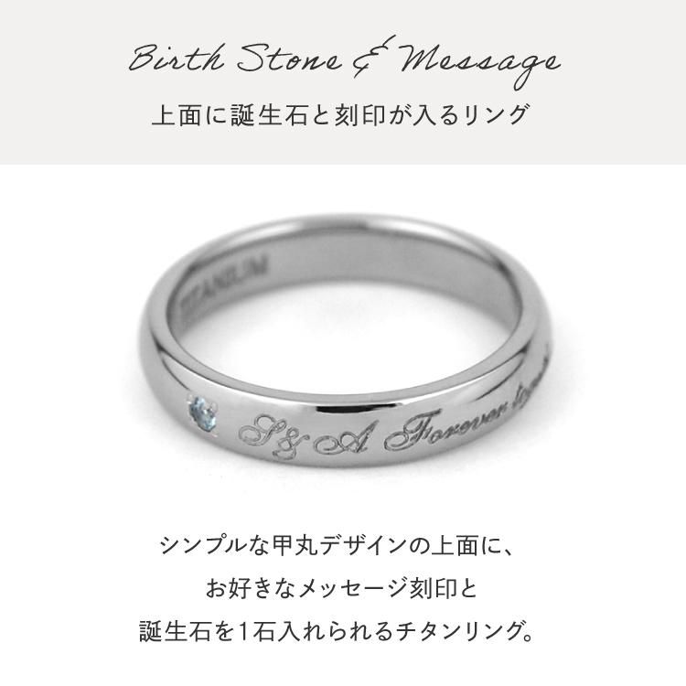 スタンダードな甲丸デザインの上面に、お好きなメッセージ刻印と誕生石を入れられるチタンリング。