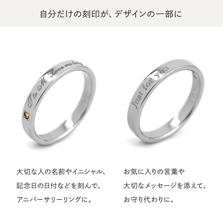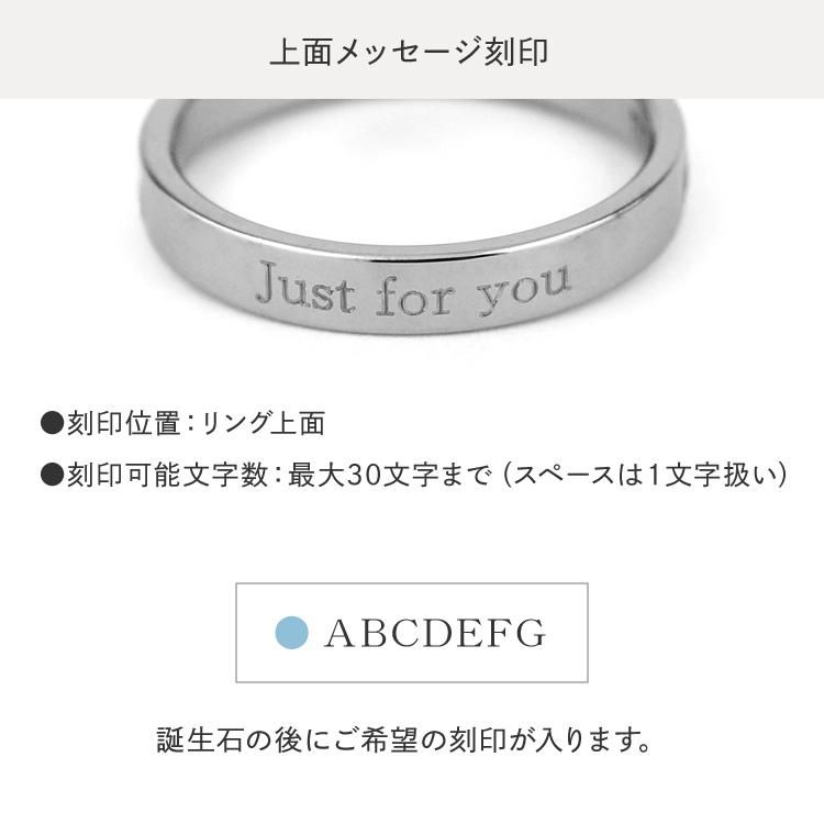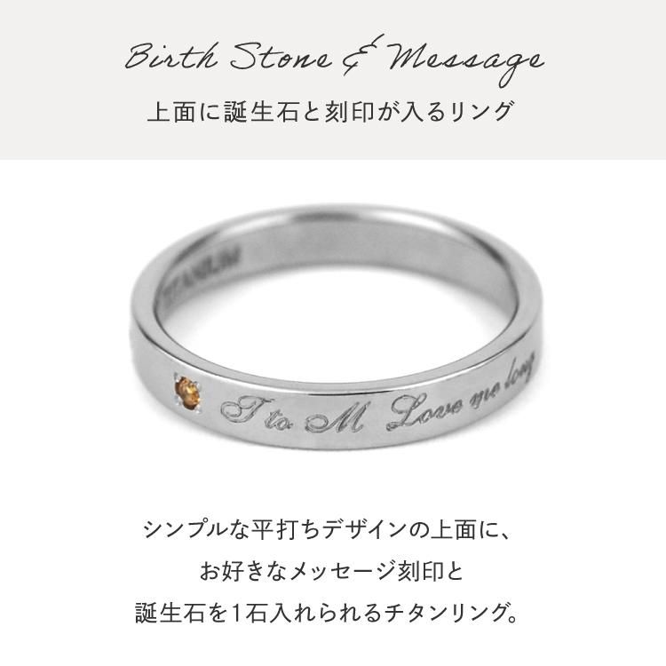 スタイリッシュな平打ちデザインの上面に、お好きなメッセージ刻印と誕生石を入れられるチタンリング。