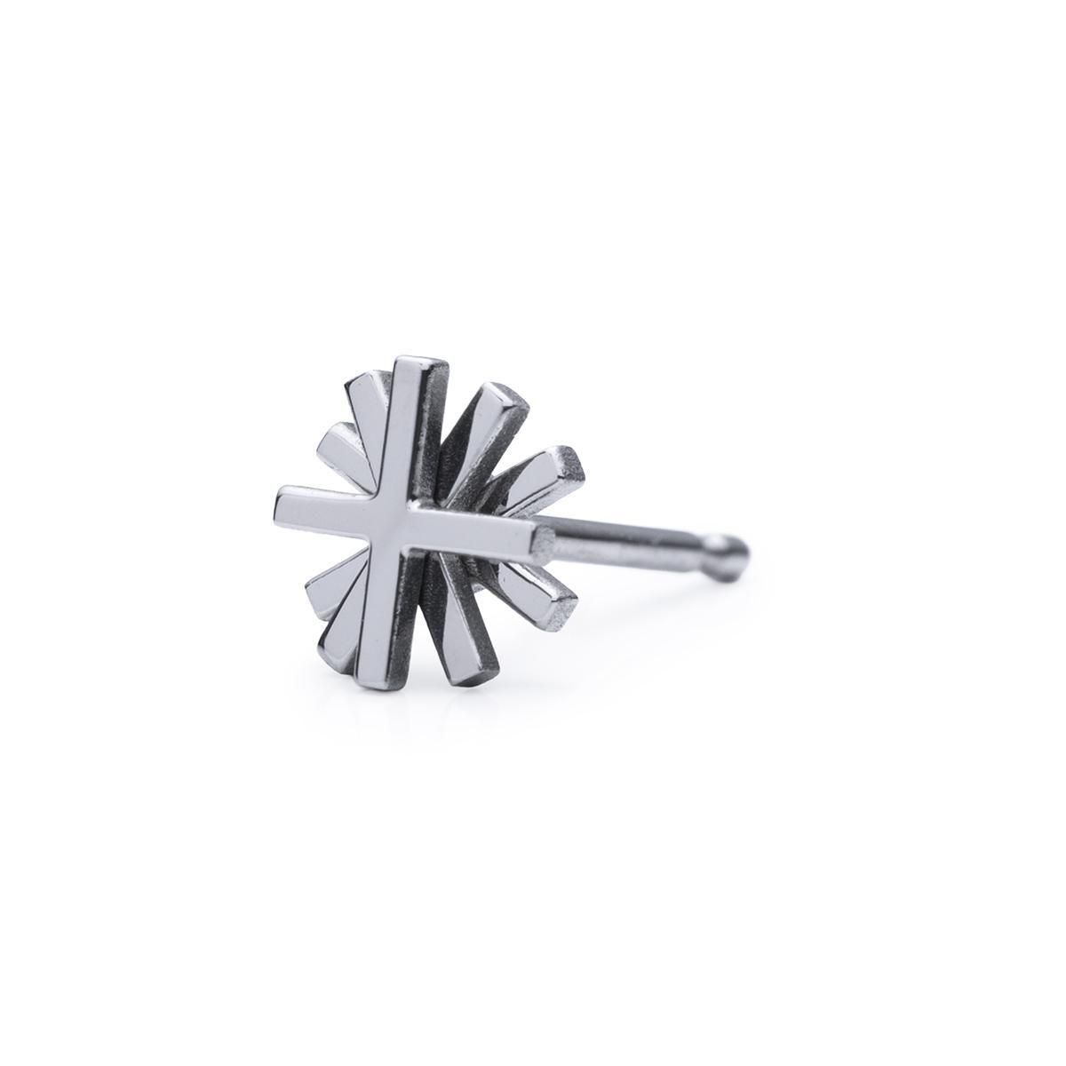 十字のパーツを三層に重ねたフォルムが、光を受けてささやかに瞬きます。