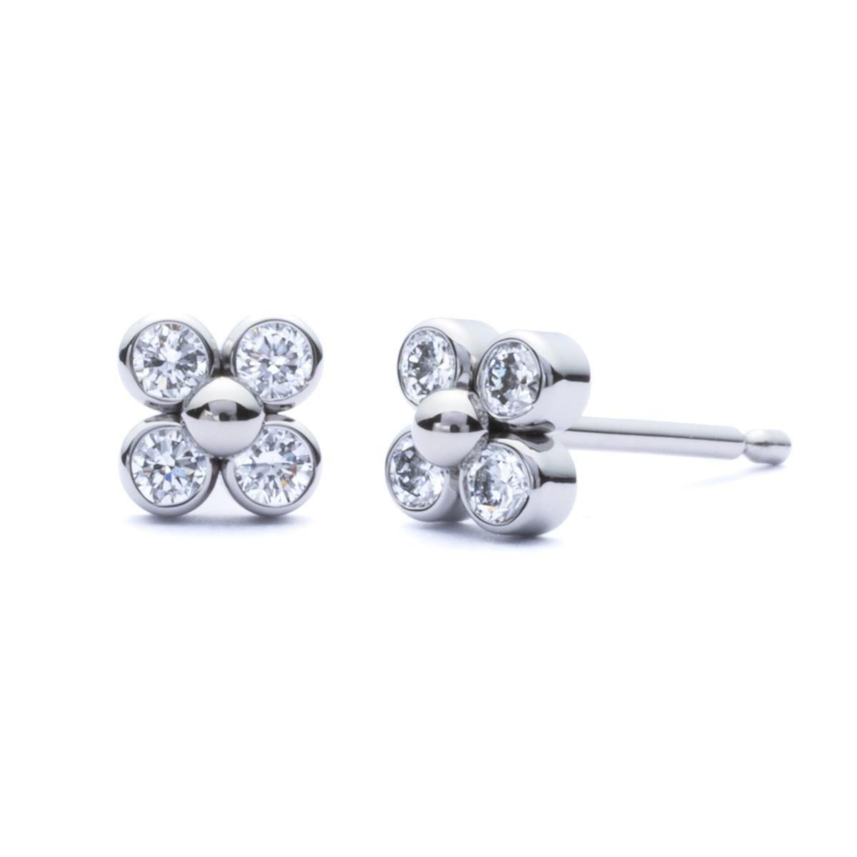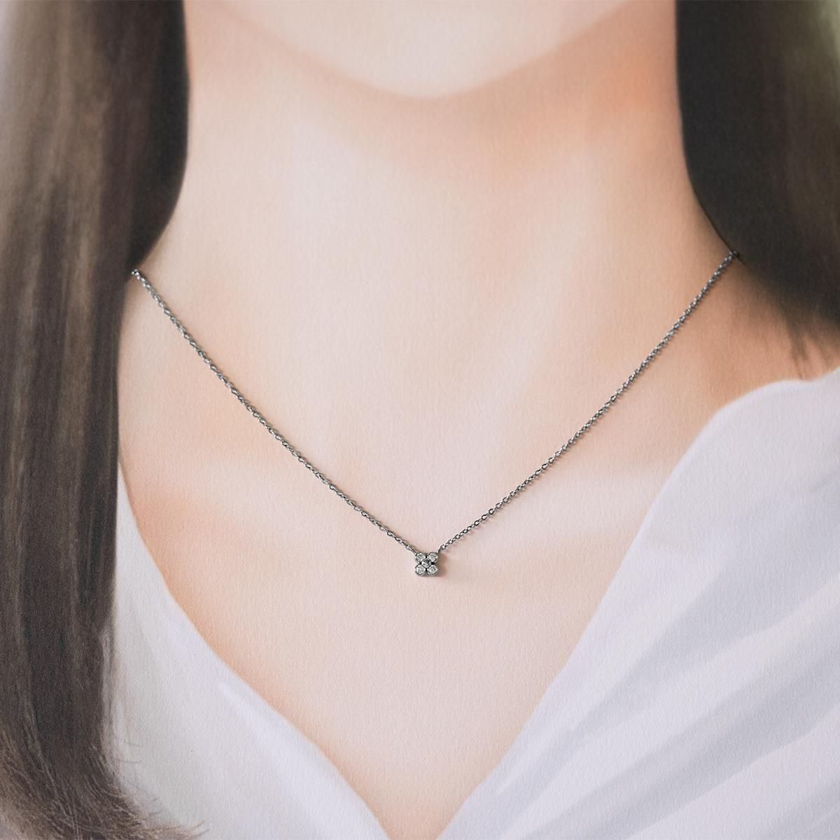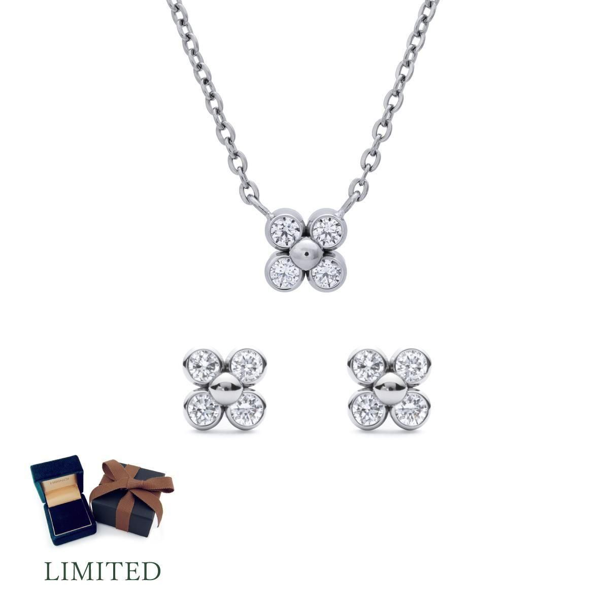 煌めくダイヤモンドを贅沢に4つ集めることで、雫が滴り輝く紫陽花の花を表現したネックレスとピアスのセット。
