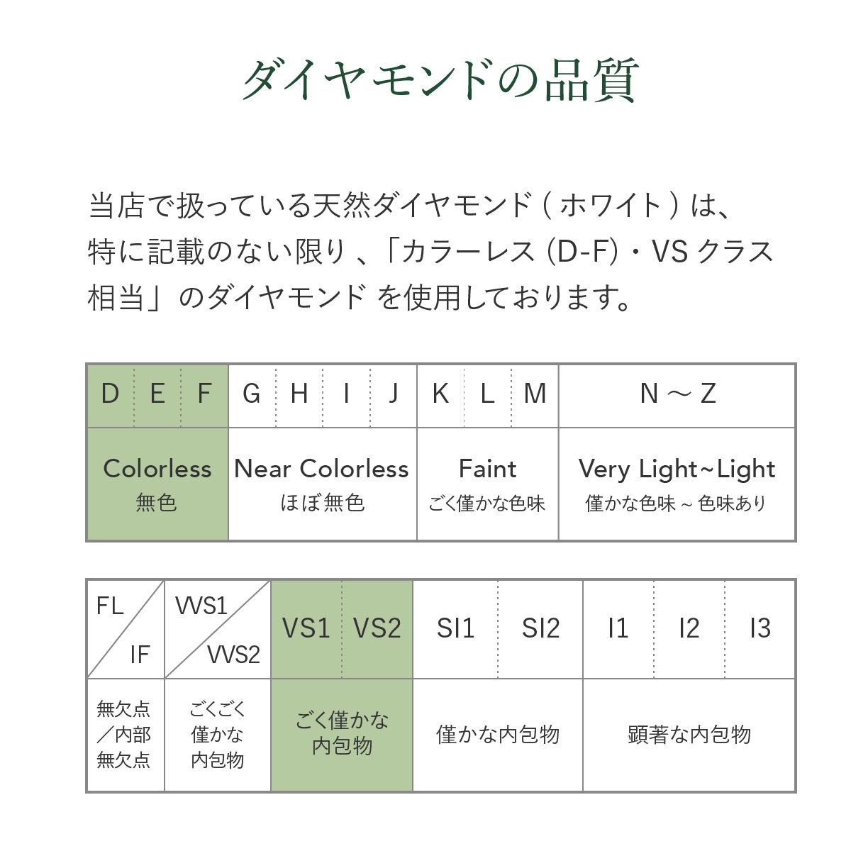 約0.03ct(直径約2mm)のダイヤは、控えめで上品なサイズ感です。