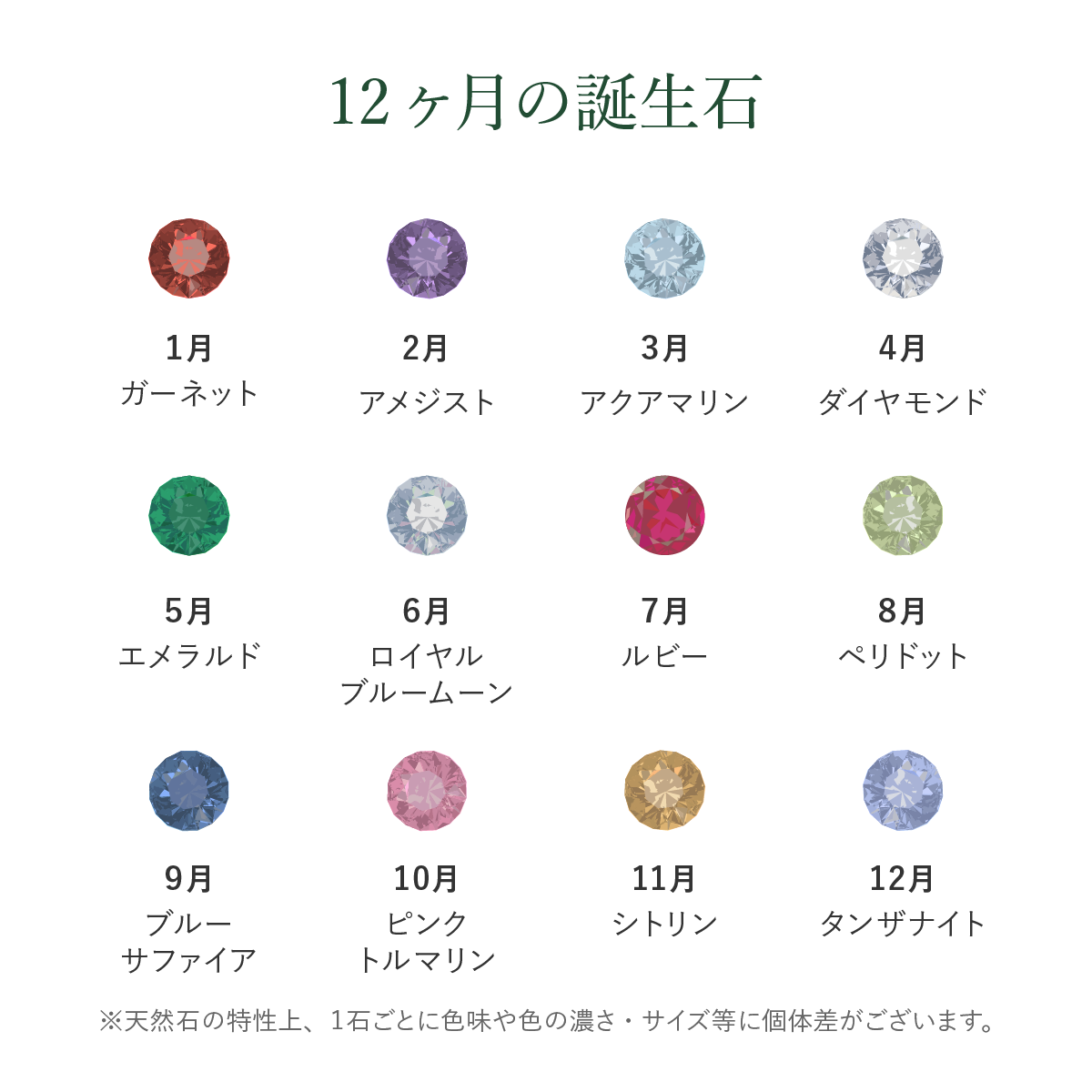 12種類の誕生石からお選びいただけます。